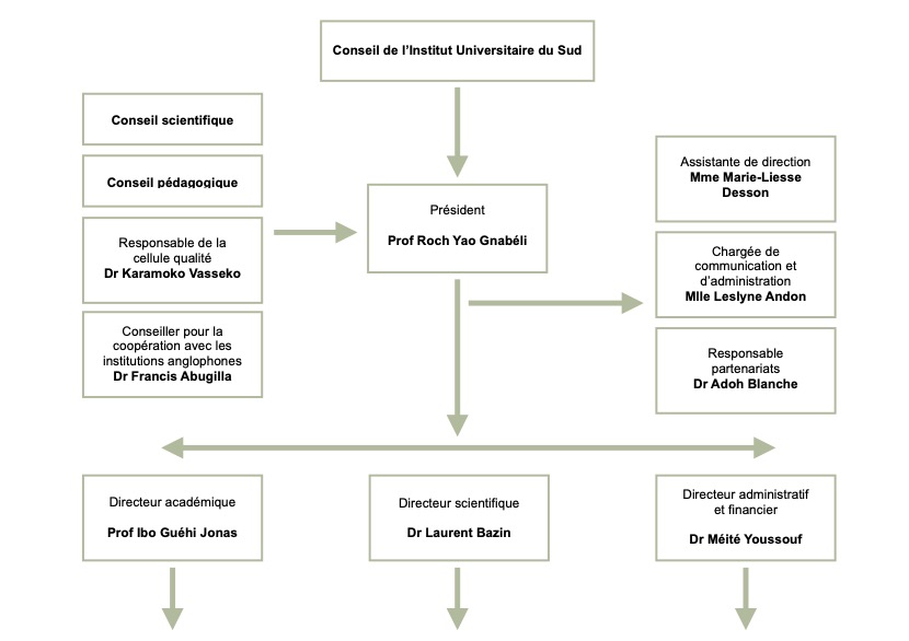 • Président : Roch YAO GNABÉLI, président de l’Institut universitaire du Sud, professeur titulaire